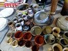 ASSORTED POTTERY, CUPS, PLATES,BOWLS, ETC, 1 x TABLE