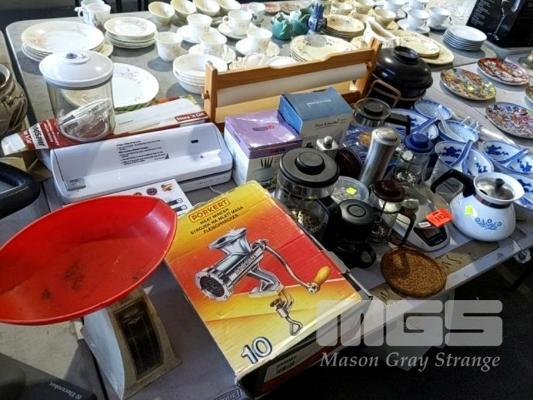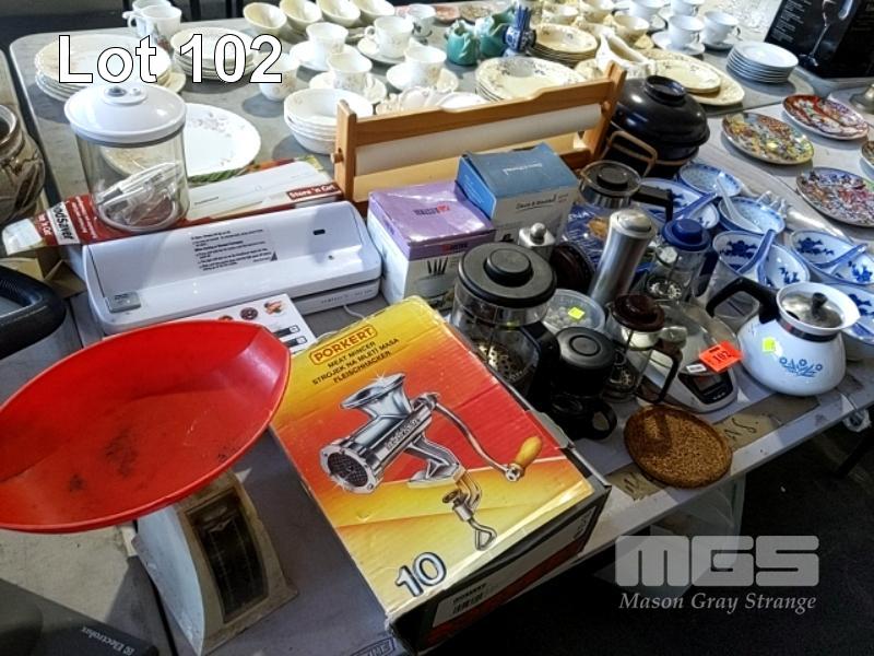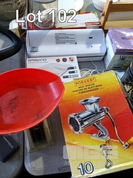 BENCHMOUNT MEAT MINCER, VACUUM SEALER, FONDUE SET, COFFEE & TEA POTS ETC