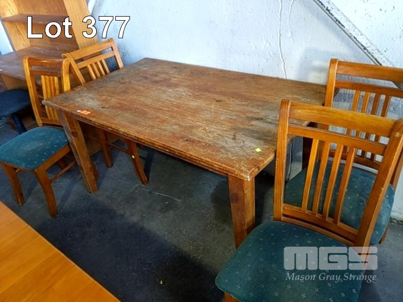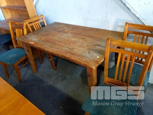 DINING SUITE, 5 PIECE, RECTANGULAR TABLE & 4 X CHAIRS (VARNISH POOR CONDITION)