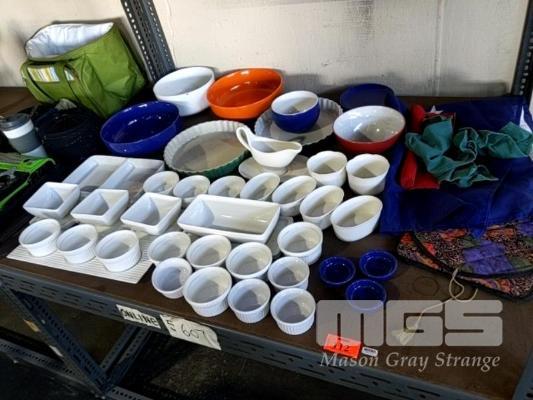 ASSORTED CERAMIC COOKWARE, RAMAKINS, BAKING DISHES ETC