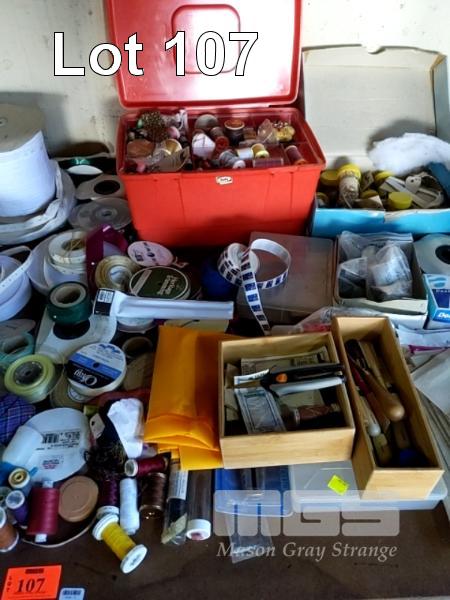 ROLLS OF ASSORTED COMMERCIAL COTTON THREAD SPOOLS, SEWING TIDY & SEWING SUPPLIES