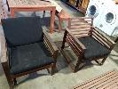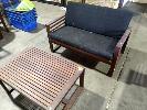 HARDWOOD OUTDOOR SETTING, SLAT TIMBER LOWLINE TABLE & 2 X ARMCHAIRS & BENCH SEAT