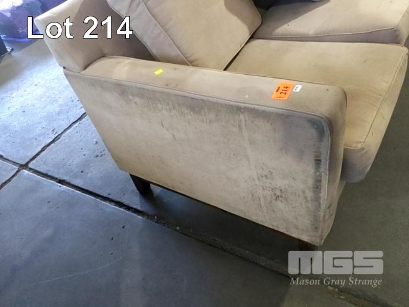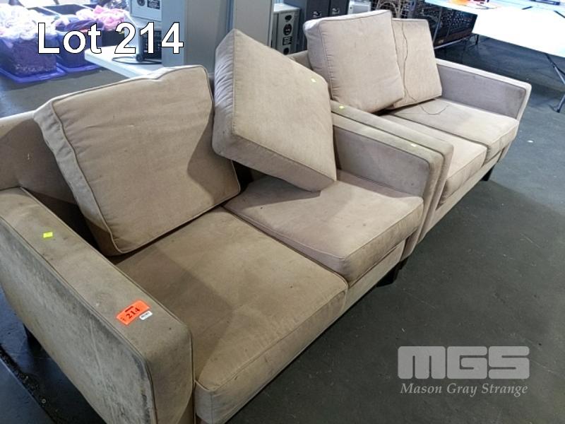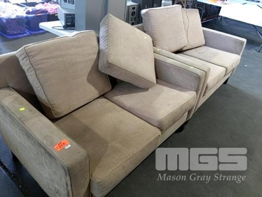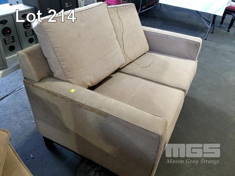 2 X BEIGE MICROFIBRE LOUNGES, STAINED