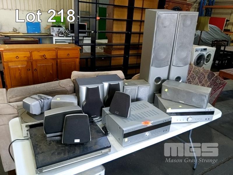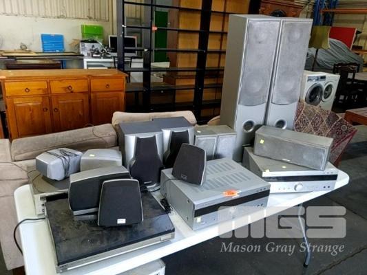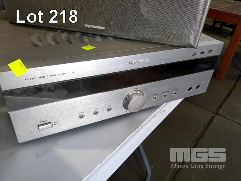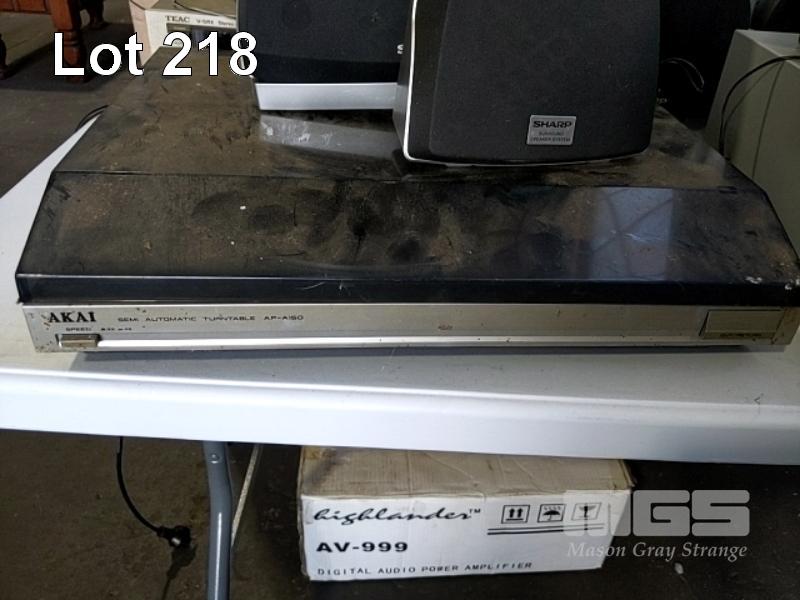 2 X HIGHLANDER HOME CINEMA AV AMP, MODEL AV-999, AKAI TURNTABLE, SHARP SPEAKERS ETC