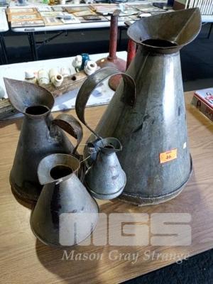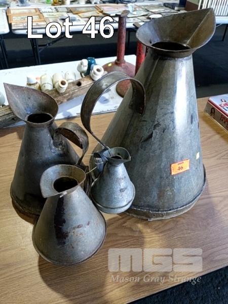 4 x MATCHING TIN WATERING PITCHERS, SMALL TO LARGE.