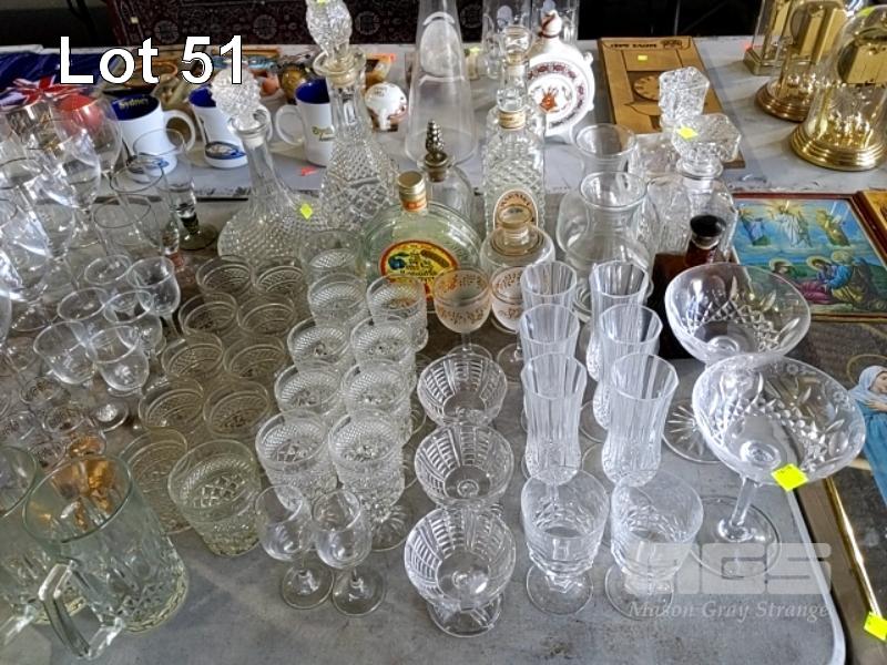 ASSORTED CRYSTAL, GLASSWARE & DECANTERS