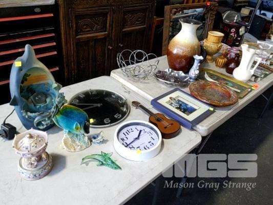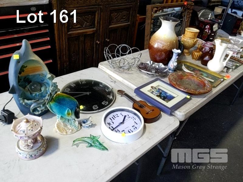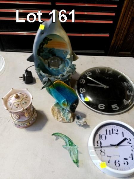 WALL CLOCKS, DOLPHIN LAMP, MUSIC BOXES, ORNAMENTS, VASES, ETC