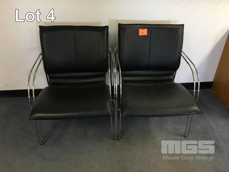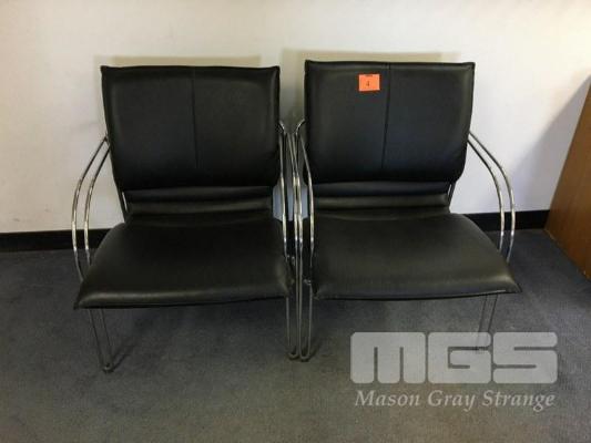2 x BLACK VINYL & CHROME FRAME VISITORS CHAIRS, 2 x TIMBER UNDERDESK DRAWER SETS & GREY LAMINATE DESK, 1600 x 900mm