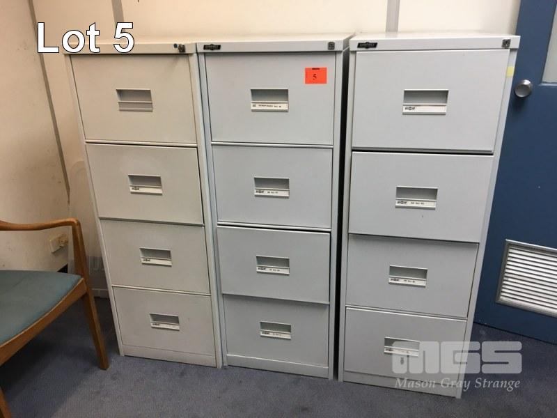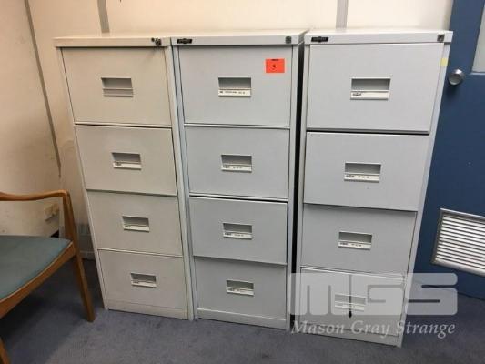 3 x GREY STEEL 4 DRAWER FILING CABINETS