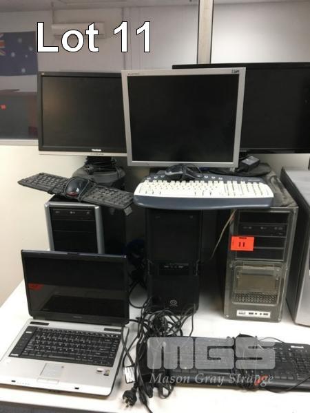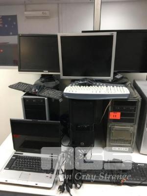 3 x DESKTOP COMPUTERS, SOPRANO VX, THERMAL TAKE, 3 x MONITORS, SAMSUNG 60cm, LG 48cm & VIEWSONIC 50cm, KEYBOARDS & MICE PLUS TOSHIBA SATELLITE MOD: A100 PSAA9A WITH CHARGER