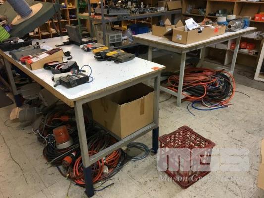 2 x MATCHING BENCHES, TIMBER TOPS, STEEL FRAMES, 1800 x 900mm