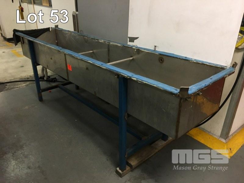 STAINLESS STEEL INCLINE WASH TROUGH, 2500 x 600 x 300mm ON STEEL FRAME