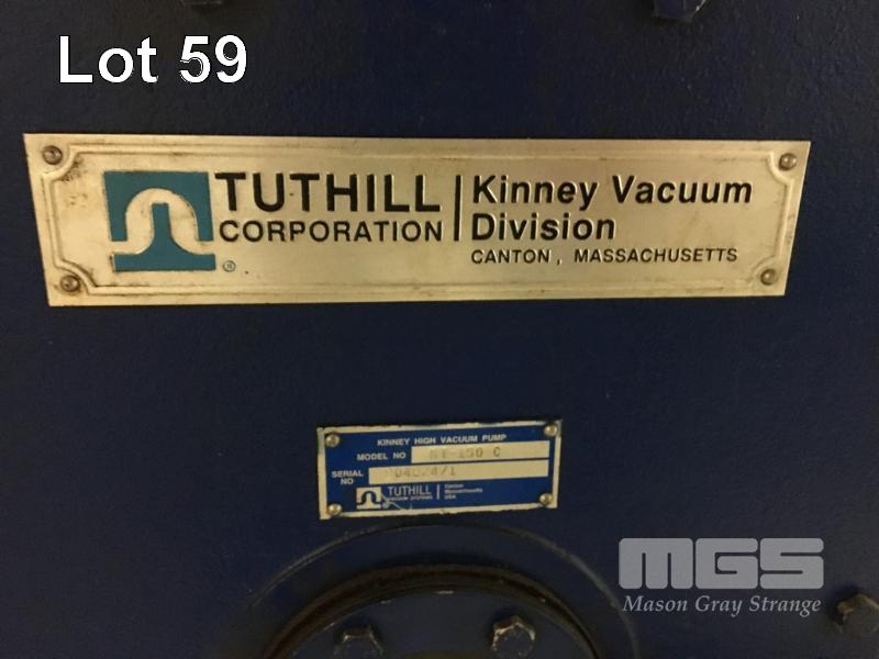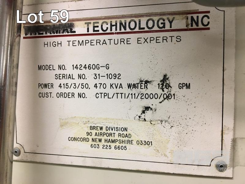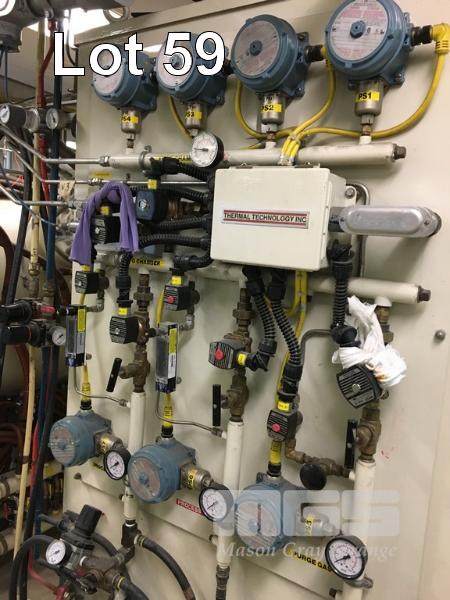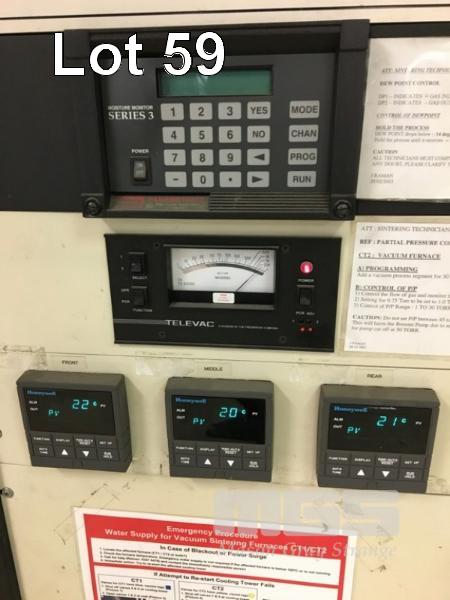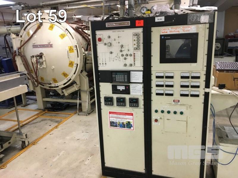 CT NO 2 60.002 SINTERING FURNACE, THERMAL TECHNOLOGY 1500 DEGREES CELCIUS MOD: 142460G S/NO: 31-1092 DOM MODIFIED 2007 (COMPLIANCE) CHAMBER 2000 x 1200mm ELECTRIC THERMAL HEATING WITH GAS INDUCTION ATMOSPHERE. (HYDROGEN, NITROGEN, ARGON) 2 STAGE VACUUM PUMPS, KINNEY, MODEL no. KT150C, BELT DRIVE, 415V S/NO: 904824/1 KINNEY, MODEL no. MB KMBD-1603 S/NO: 69890 BELT DRIVE 415V, INCLUDES ALL MANIFOLDS, PIPING, SWITCHGEAR INC INFEED TROLLEY & 8 x GRAPHITE OVEN TRAYS