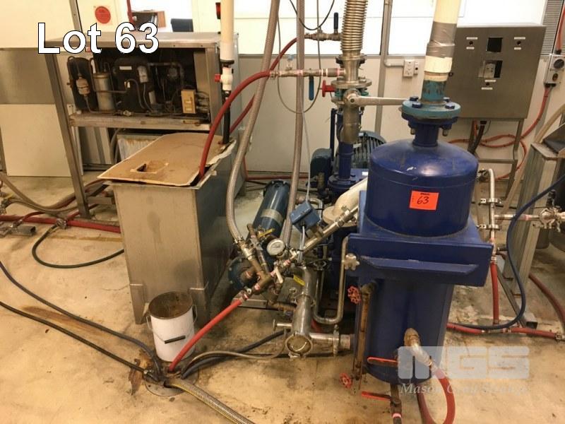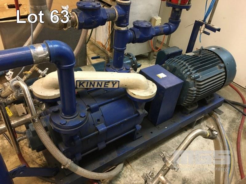 KINNEY VACUUM SYSTEM 25np 415V MOD: KLR0300KBA S/NO: 904825 & CAT 600 HEAT EXCHANGER & REFRIGERATION CHILLER WITH SMALL STAINLESS STEEL TANK