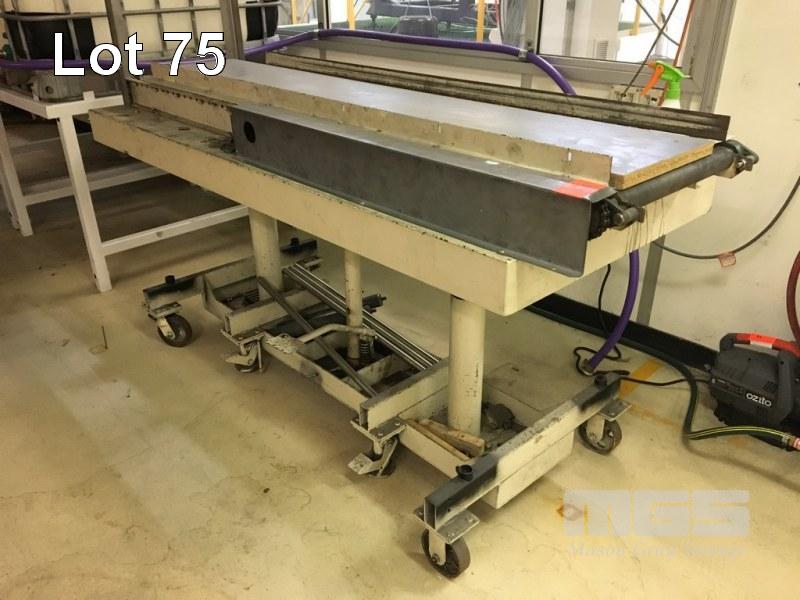 MANUAL HYDRAULIC LIFT TROLLEY WITH ROLLER CONVEYOR TOP, 2100 x 750mm (W)