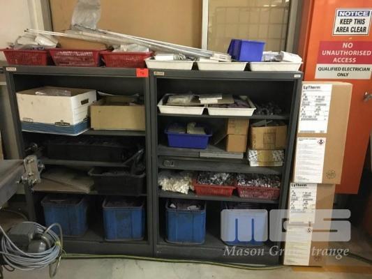 2 x SHELVES CERAMIC & GRAPHITE INSULATION MATERIAL INC TRAYS, SLIDES, RODS, CAPS, TUBES & 2 x BOXES CERAMIC REFRACTORY FIBRE, INCLUDES SHELF UNIT