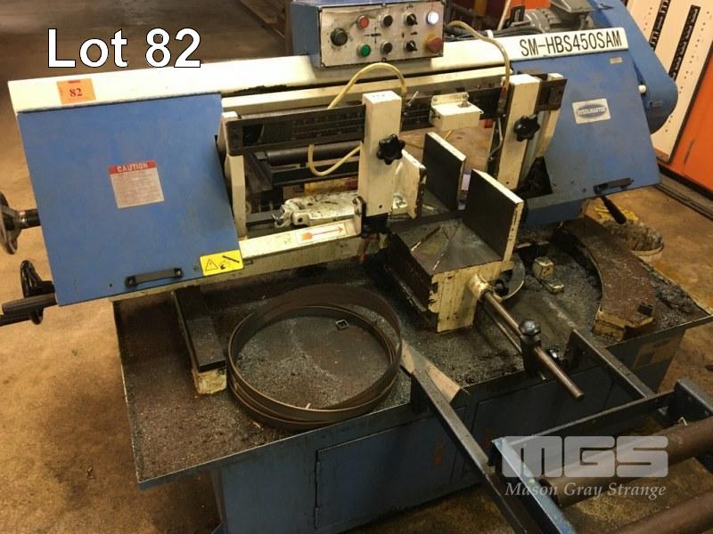 HORIZONTAL BANDSAW, STEELMASTER MOD: SM-HBS450SAM 450mm CUT , SWIVEL VICE FOR MITRE CTTING, IN & OUT ROLLER TABLES, 415V