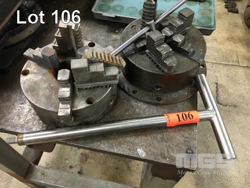 2 x 3 JAW LATHE CHUCKS, KEYS & REVERSE JAWS