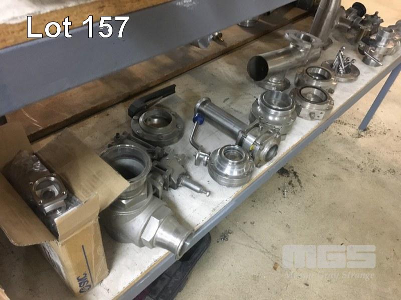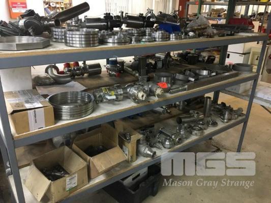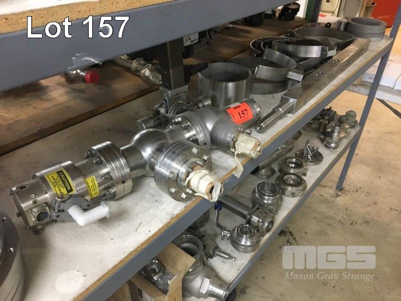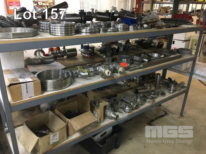 ASSORTED STAINLESS SEEL VALVES & FITTINGS, FLANGES, BALL VALES, ACTUATORS & MOUNTING BRACKETS (CONTENTS OF RACK, 3 x SHELVES)