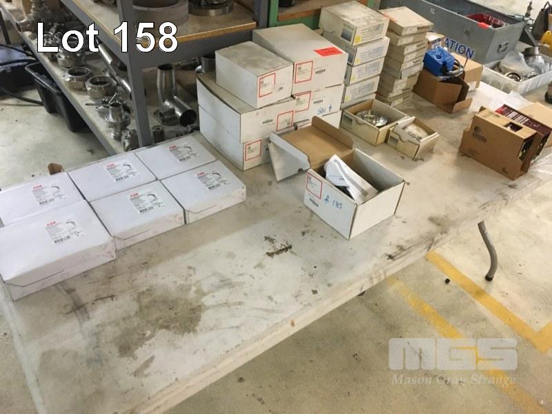 6 x ABB SOFT STARTERS, 7 x ONE WAY VALVES, GEMO, 6 x KEYSTONE BUTTERFLY VALVES PART NO: 938467 3 x POWER MODULES, 4 x NEW JOHNSON ACTUATORS & 9 x PROXIMITY SWITCHES, (CONTENTS OF TABLE)