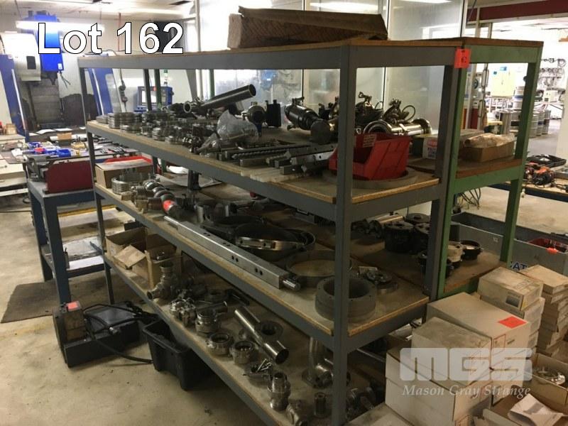 2 x STOCK RACKS, 4 TIER, STEEL FRAME, PARTICLEBOARD SHELVES, 1830 x 2400mm