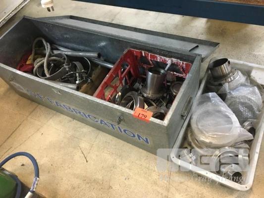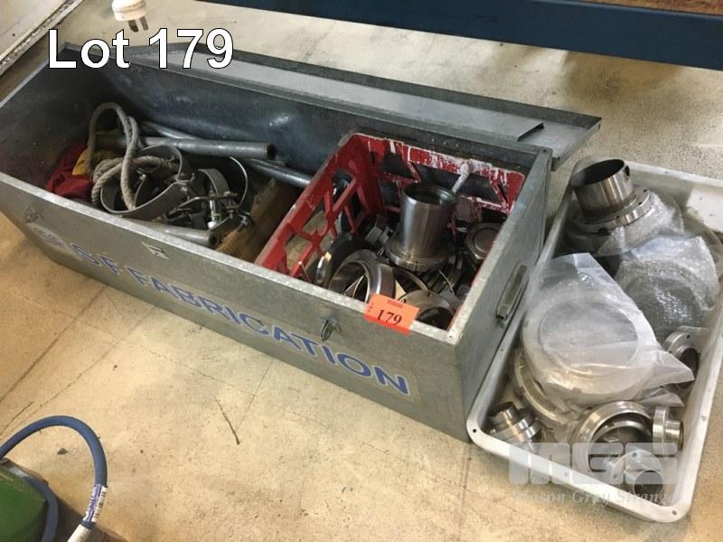 GALV SITE BOX & CONTENTS, STAINLESS STEEL PIPE FITITNGS, BRACKETS, ETC