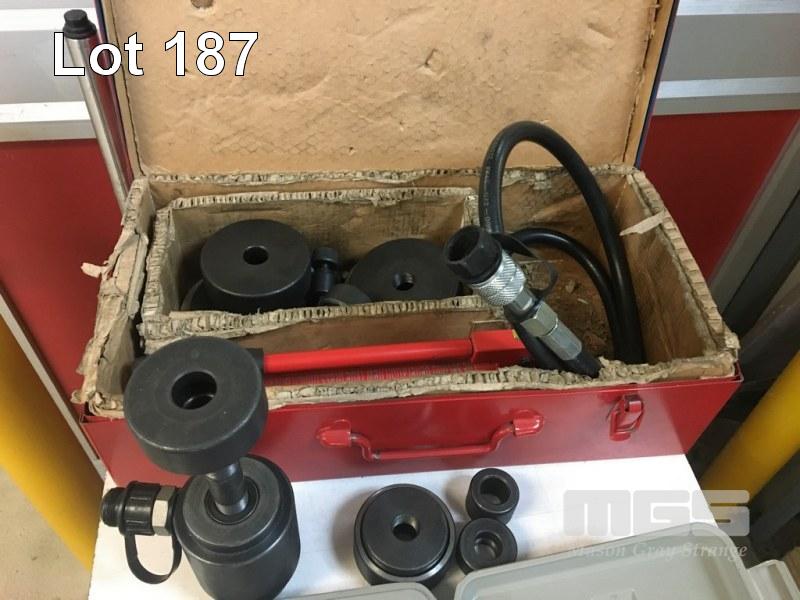 HYDRAULIC PRESS PUNCH IN CASE WITH 8 x DIES, MANUAL PUMP, UP TO 100mm