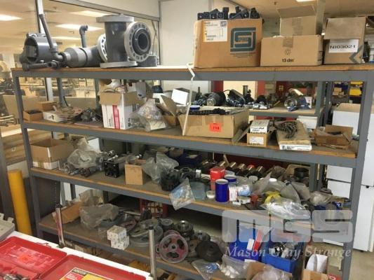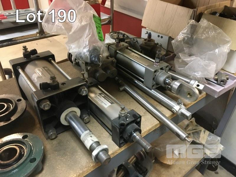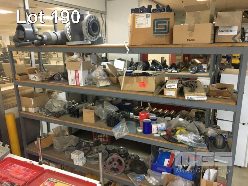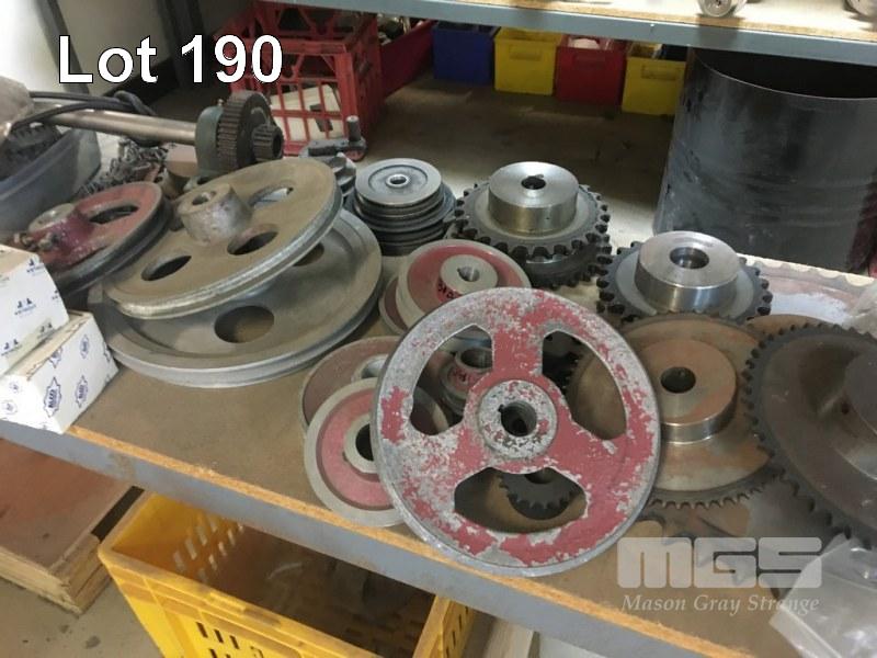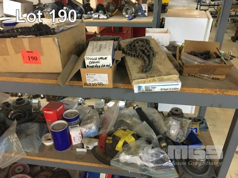 ASSORTED SPARE PARTS, SPROCKETS & CHAINS, PULLEYS, BEARINGS & HOUSINGS, PNEUMATIC RAMS, PLASTIC PIPE FITTINGS (CONTENTS 1 x RACK)