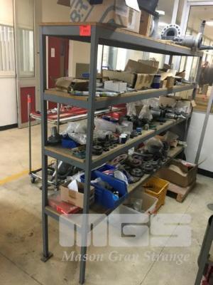 3 x STEEL FRAME PARTICLEBOARD SHELVES, 4 TIER, MATCHING, 2400 x 450 x 1800mm