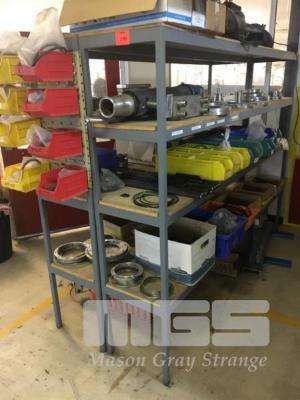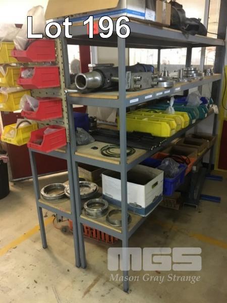 2 x STEEL FRAME PARTICLEBOARD SHELVES, 4 TIER, MATCHING, 2400 x 450 x 1800mm