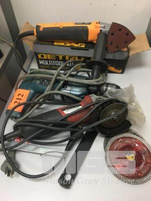 DETROIT MULTI TOOL SANDER, BOSCH HAMMER DRIL & MILWAUKEE 100mm ANGLE GRINDER