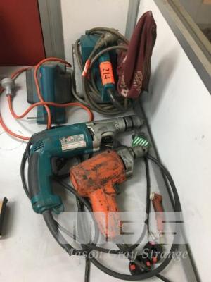 MAKITA BELT SANDER, HAMMER DRILL, PLANER & SMALL HAND DRILL, 240V