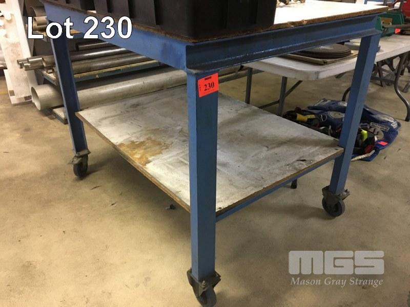 HEAVY DUTY MOBILE BENCH, TIMBER TOP, 2 TIER, 1300 x 960 x 1030mm