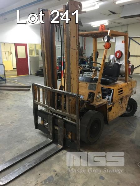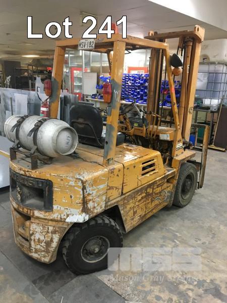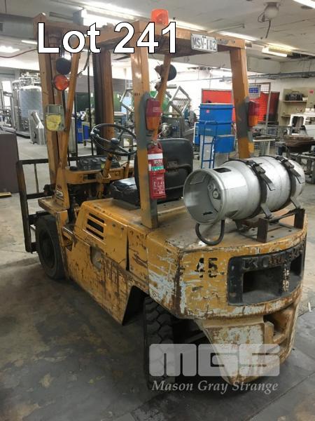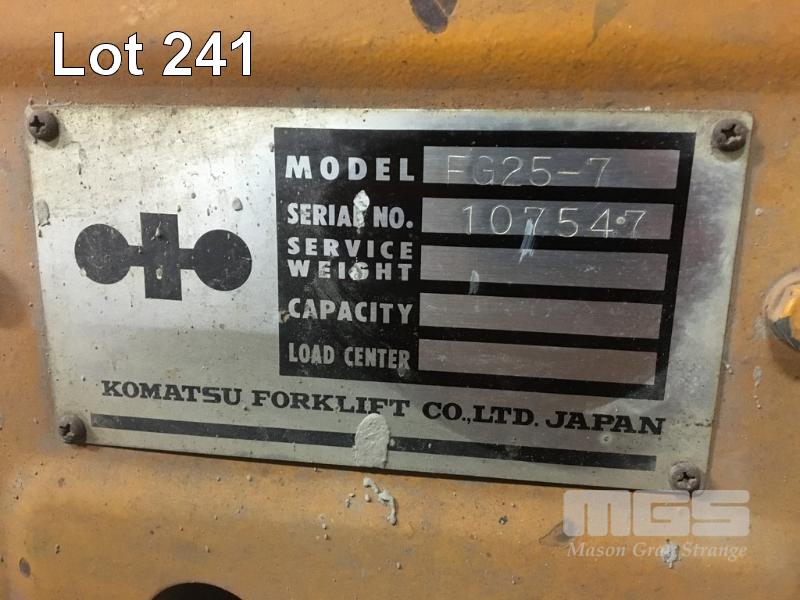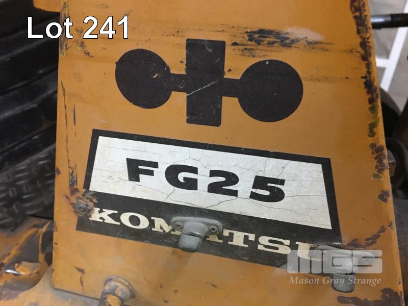 KOMATSU FG25 FORKLIFT MOD: FG25-7 2 STAGE MAST, LPG, SIDE SHIFT SOLID TYRES, 4 CYLINDER HOURS: 1,549 SHOWING