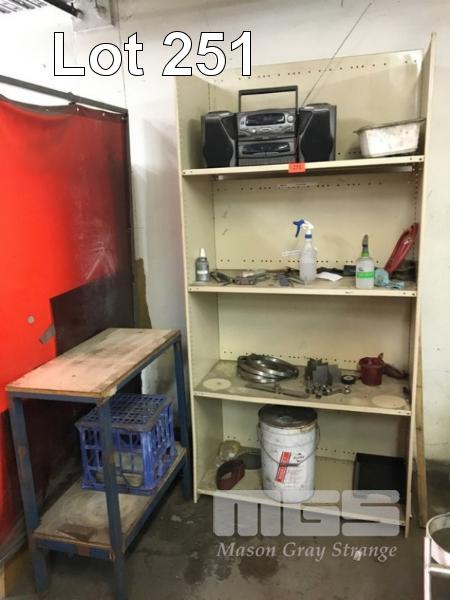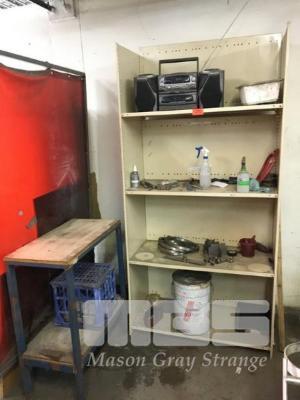STEEL SHELF UNIT, 2200 x 900mm & CONTENTS 20 LITRE FUCHS RENOLIT EP2 GREASE & VARIOUS STAINLESS STEEL HARDWARE WITH SMALL WORK BENCH