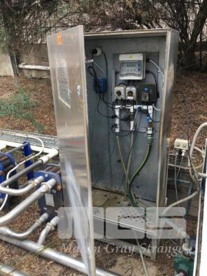 STAINLESS STEEL, WEATHERPROOF CABINET, 1400 x 800 x 400mm (D) WITH COMPONENTS CONDUCTIVITY CONTROLLER 4 x DOSING PUMPS PROMINET, SEKO WITH SMALL LINE PUMP
