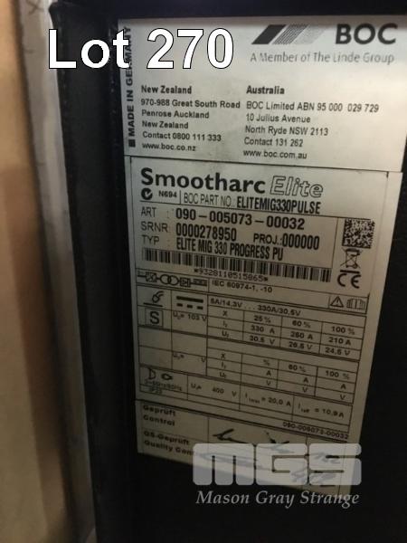 MIG WELDER, BOC SMOOTHARC ELITE MIG330 PROGRESS WELDER 415V ON STAND DIGITAL READOUT