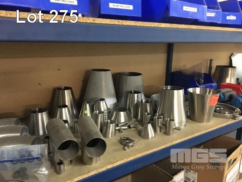CONTENTS RACK, STAINLESS STEEL FITTINGS, REDUCTON TEES, CONES, PIPE THREADS, ACTUATORS & HANDLES