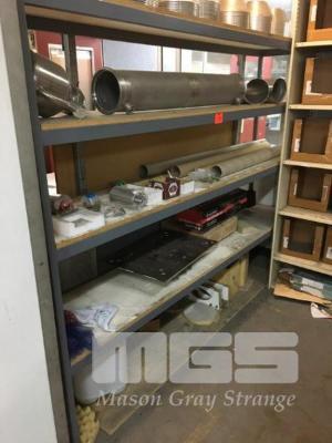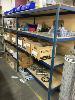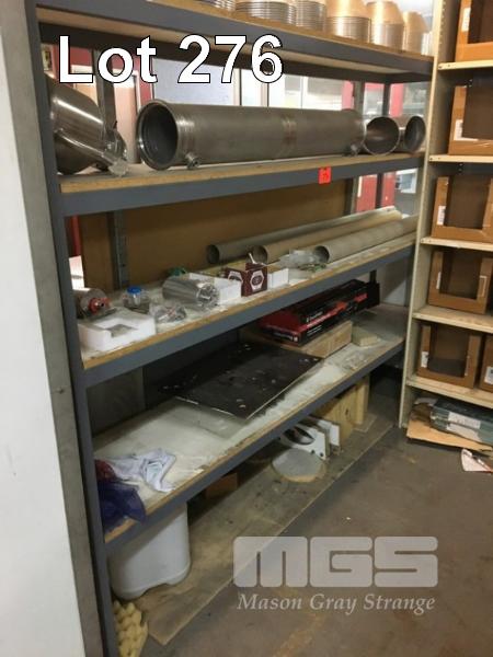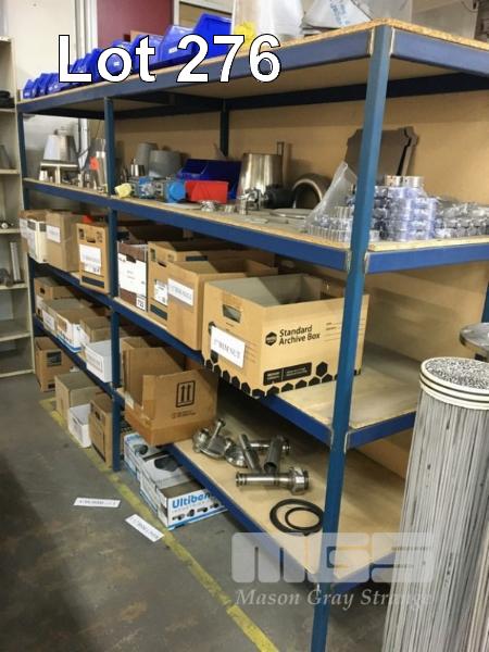 PAIR STEEL FRAMED RACKS, 4 TIER, PARTICLEBOARD SHELVES, 2400 x 450 x 1820mm (H) & 3000 x 600 x 1820mm (H)
