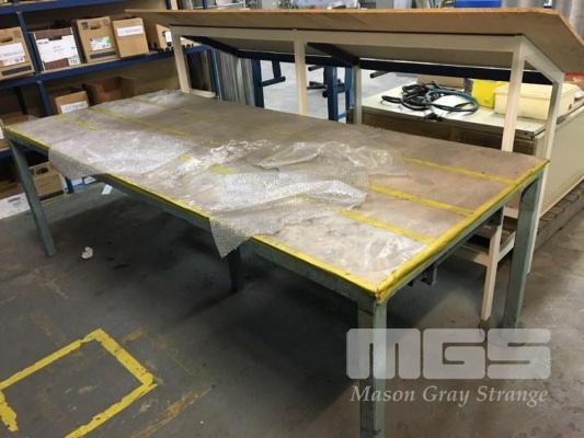 PACKING BENCH, 2400 x 1000 x 800mm (H), STEEL FRAME, TIMBER TOP, WITH PLAN BENCH, 2400 x 700mm