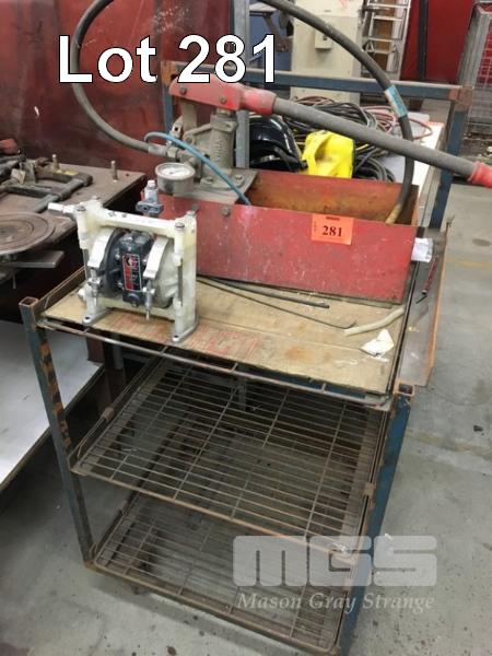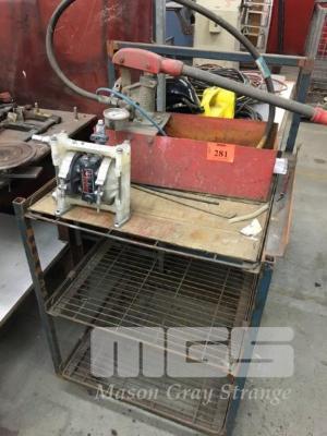 GRACO DIAPHRAGM PUMP, HUSKY 307 & VIPAX PRESSURE TESTER ON STEEL TROLLEY