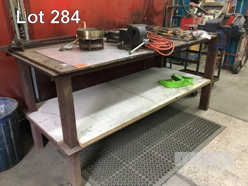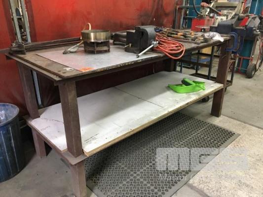 WELDERS BENCH, PLATE TOP, 2 TIER, 2000 x 900 x 900mm, HEAVY DUTY, OFFSET 6" VICE