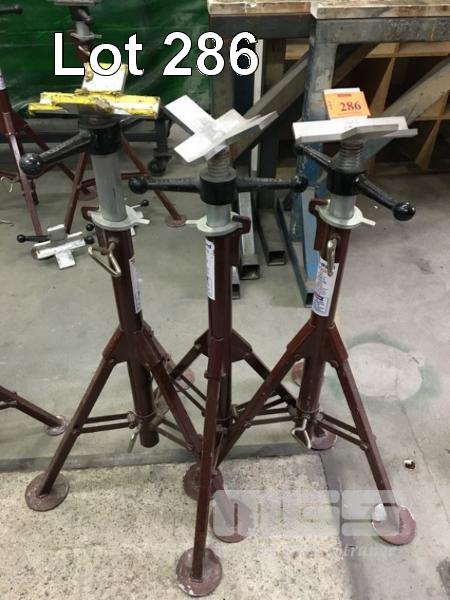 3 x ADJUSTABLE TRIPOD FOLDAWAY STANDS, TALL TRI STANDS, 1800kg RATED