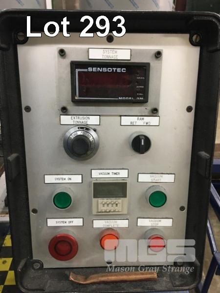 LOOMIS EXTRUDER 15 TONNE HYDRAULIC OPERATED RAM, LEETON PUMP WITH VACUUM PUMP, JU INDUSTRIES DIGITAL CONTROLLER & DIE SETS