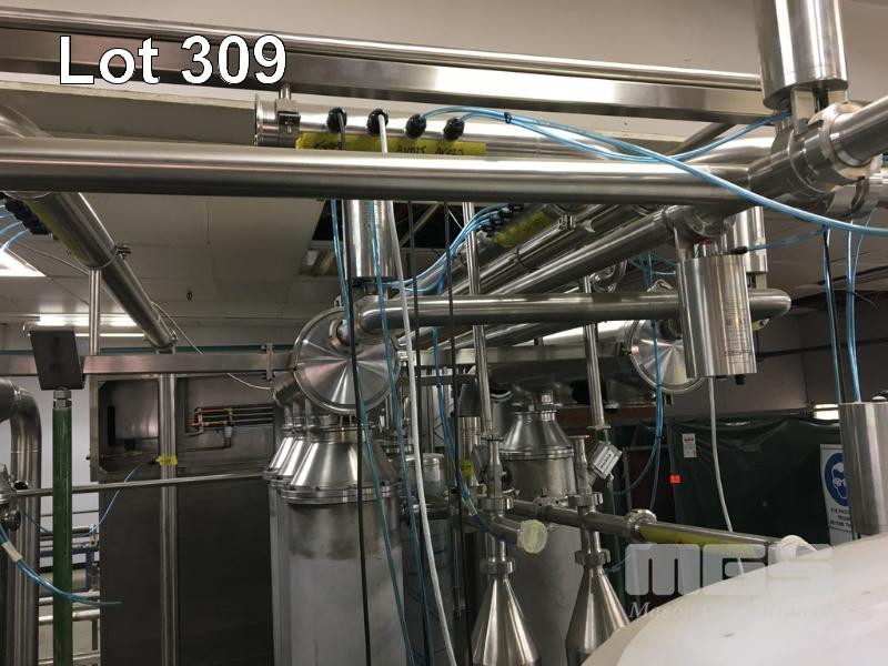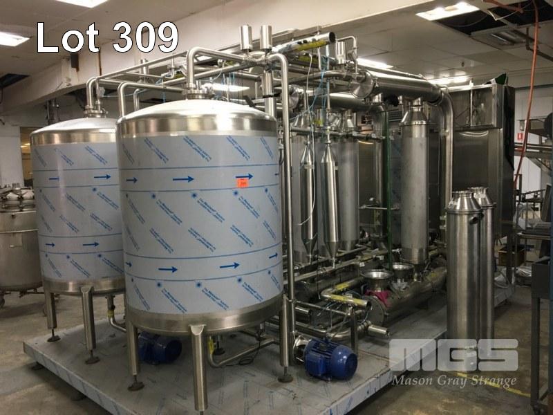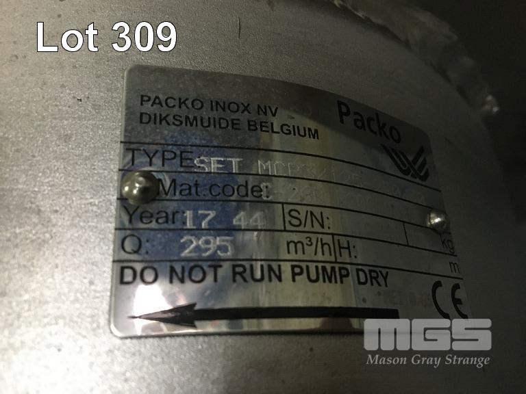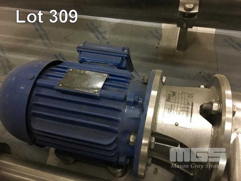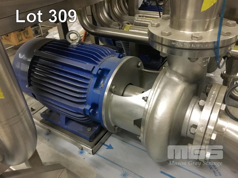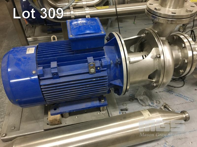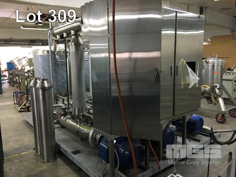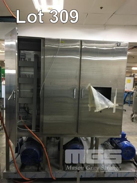 PART FINISHED FILTRATION UNIT, TRIPLE BANK 5 x PACKO PUMPS, 1 x 15kw, 2 x 30kw, 2 x 4kw, ON STAINLESS STEEL BASE, 4500 x 2800mm 3 x DOOR STAINLESS STEEL CONTROL CABINET