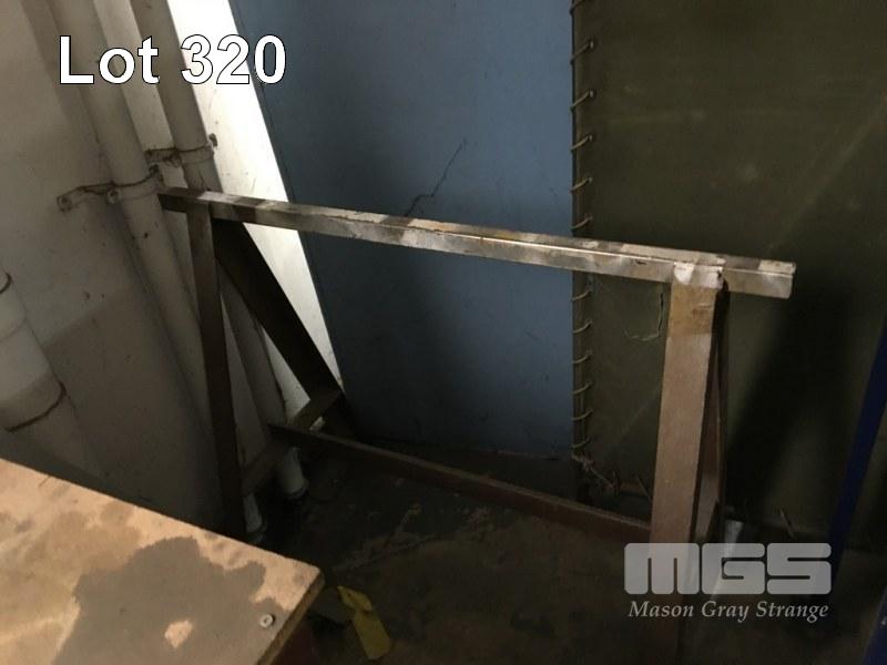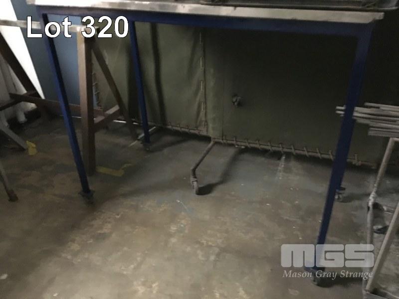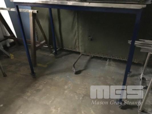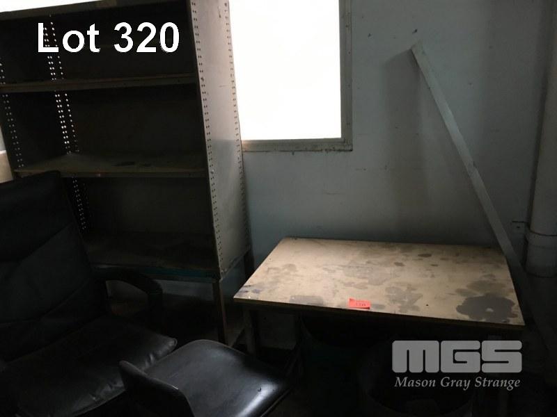 STEEL 4 TIER SHELF UNIT, 1800 x 900mm, w SMALL PACKING TABLE AND 2 x CHAIRS