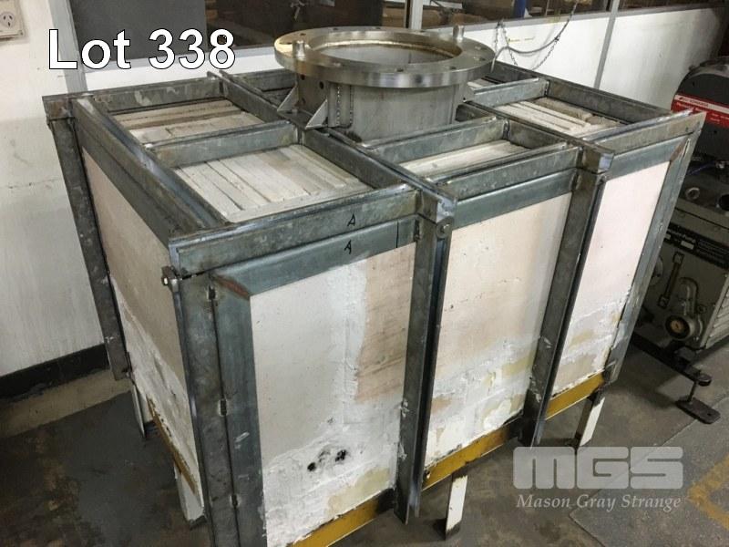 FABRICTAED CRUCIBLE 1300 x 1000 x 800mm BOX FRAME w DROP IN STAINLESS STEEL HEAVY DUTY PRESSURE VESSEL OVER HEAD CHAIN HOIST, PENDANT CONTROL 415v (UNFINISHED PROJECT)