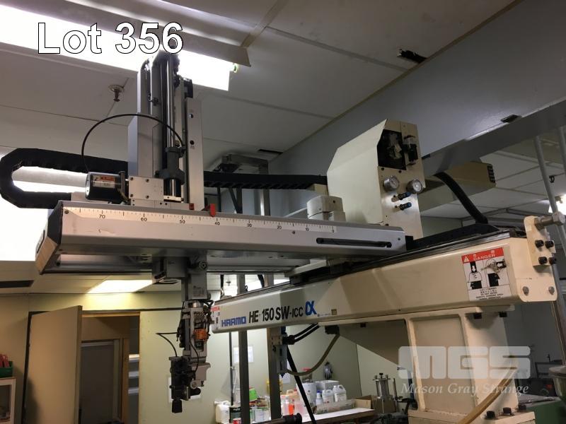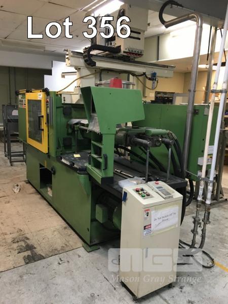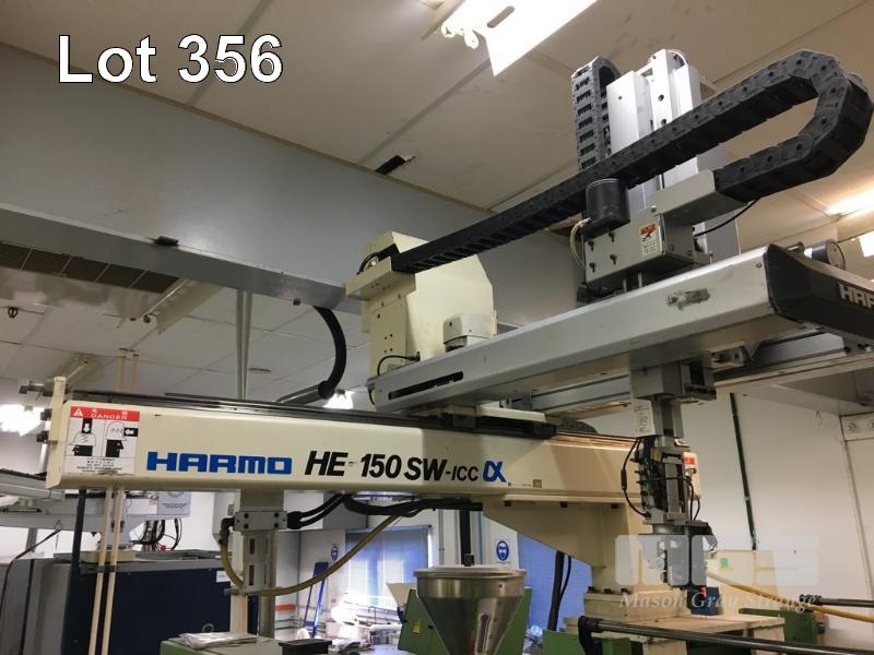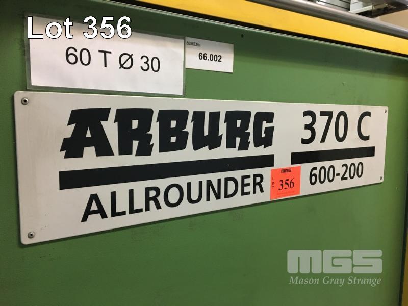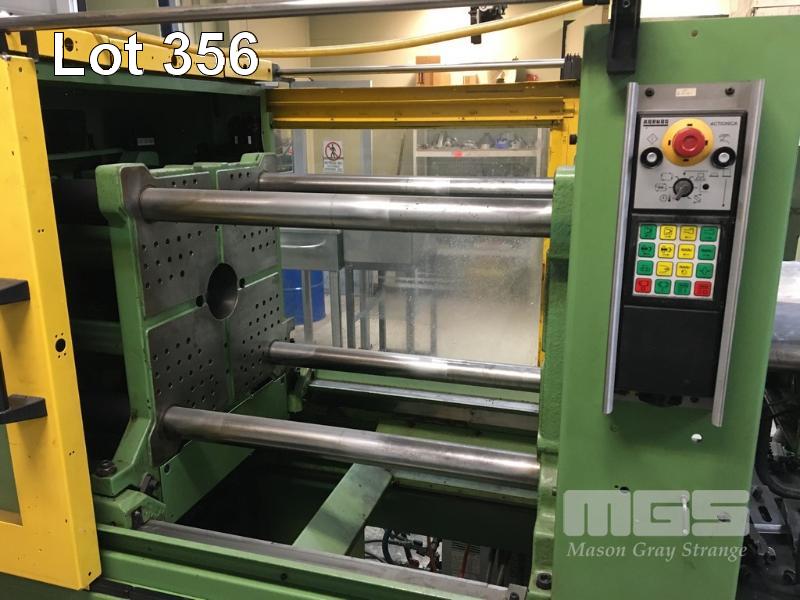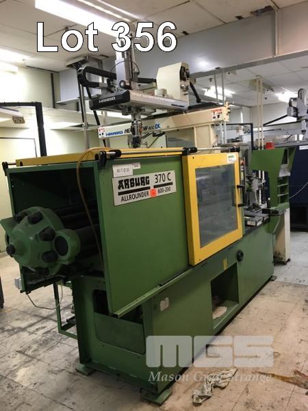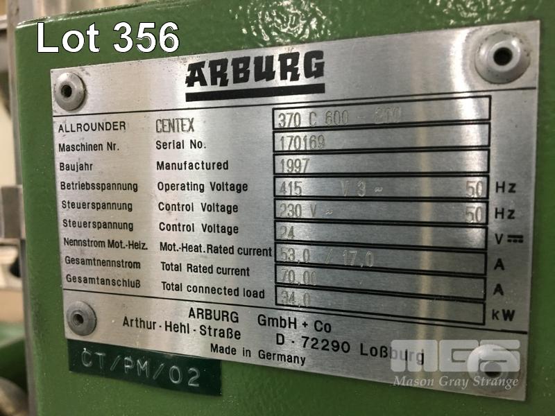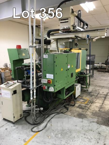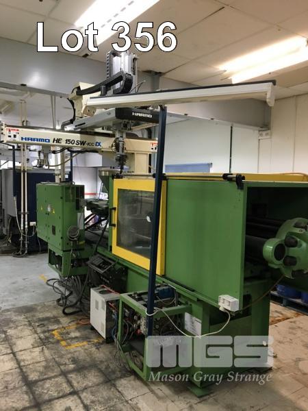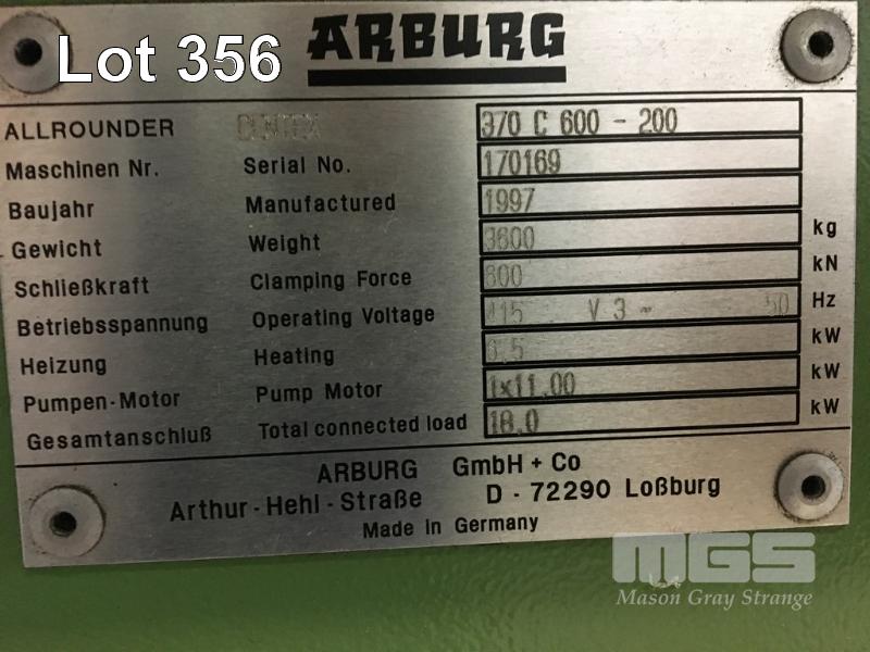 INJECTION MOULDER, ARBURG - ALL ROUNDER MODEL: 370C 600/200 60 TONNE CAP DOM: 1997 SERIAL: 170169 ARBURG CONTROLS FITTED WITH HARMO FALCON AUTO LOADER, MODEL HE-150-SW-ICCX AND CHILLER 415v 2 TROLLEYS ASSORTED CLAMPS AND FITTINGS
