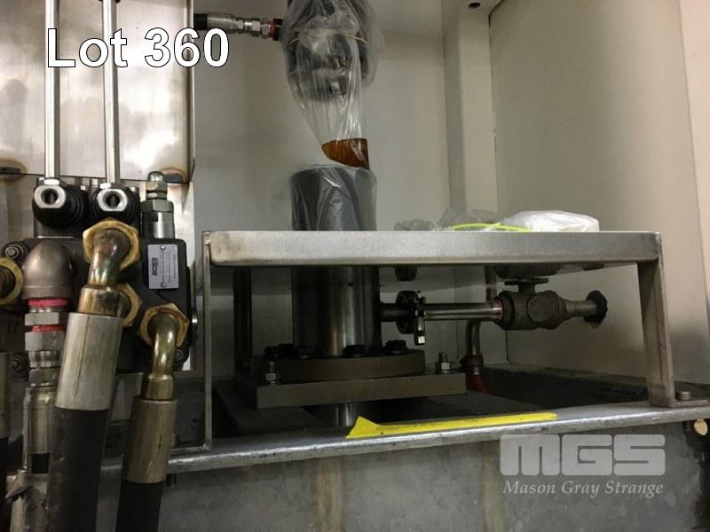 CYLINDER PRODUCT COMPACTION PRESS SINGLE RAM, 1000mm STROKE 2 STAGE CONTROL WITH REMOTE HYDROLIC POWER PACK 415v w VACUUM PUMP RECOVERY IN BOX STEEL FRAME (DUAL RAMS, 1m STROKE)