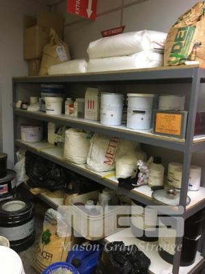 CONTENTS OF STORE ROOM INCLUDING MOULD CURING, RESINS, POWDERS (ACRAWAX, POLY RESIN, METALS, NICKLE, TITANIUM, STAINLESS STEEL, COBALT, ALLOY 316L, SAF2507, CHROMIUM 301, LUPEROX F40)
